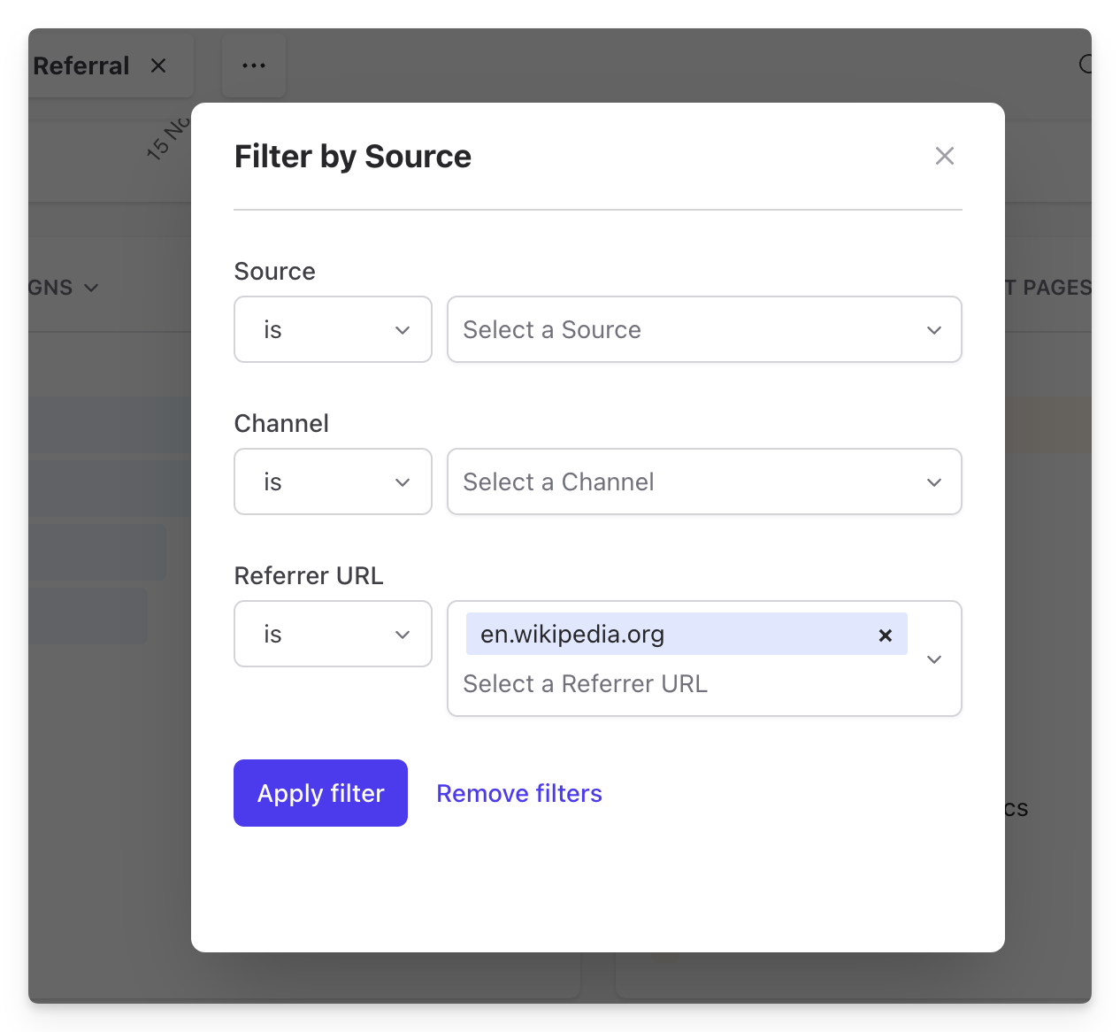 If you want to be even more specific and are expecting traffic from a certain, high-value backlink: you can also check if you’ve been getting traffic from that specific domain itself.